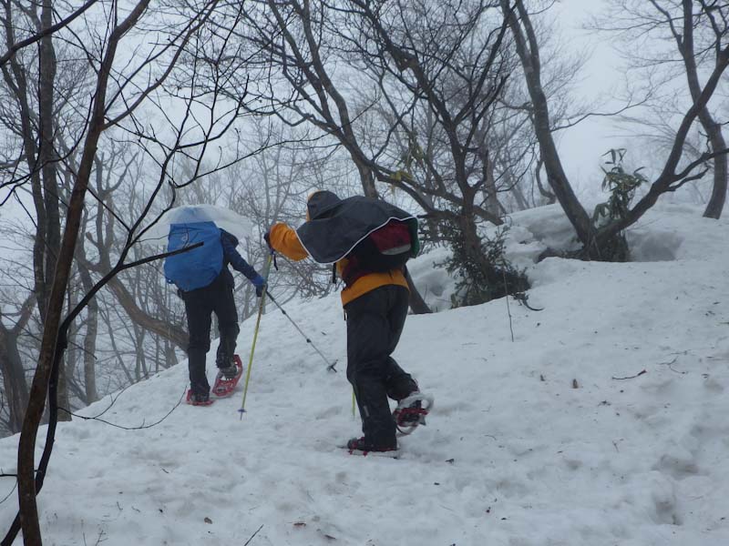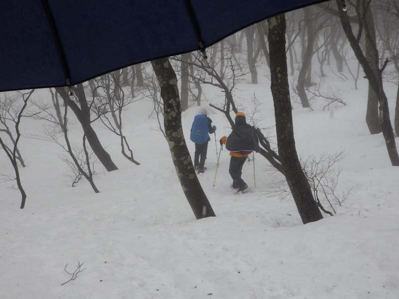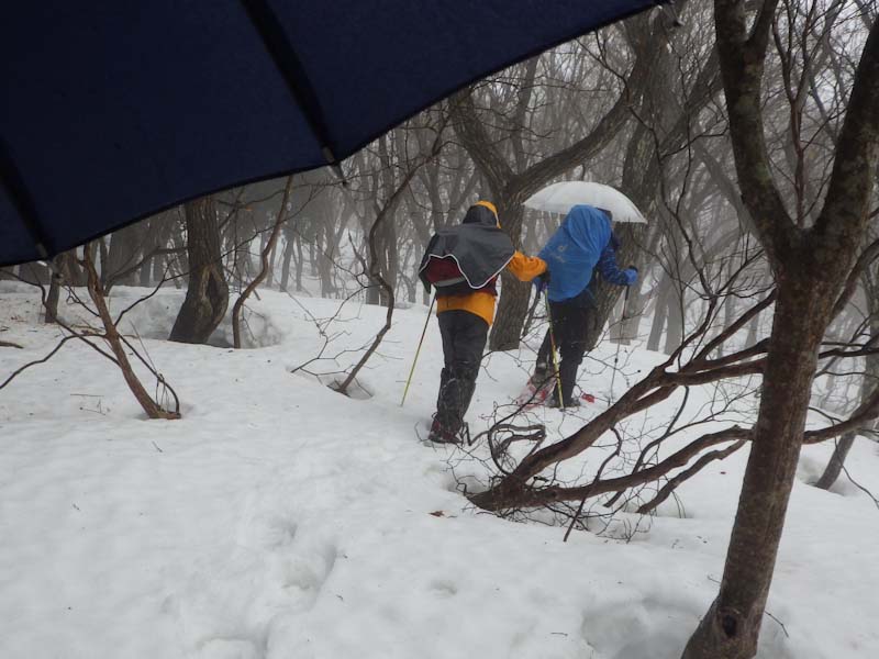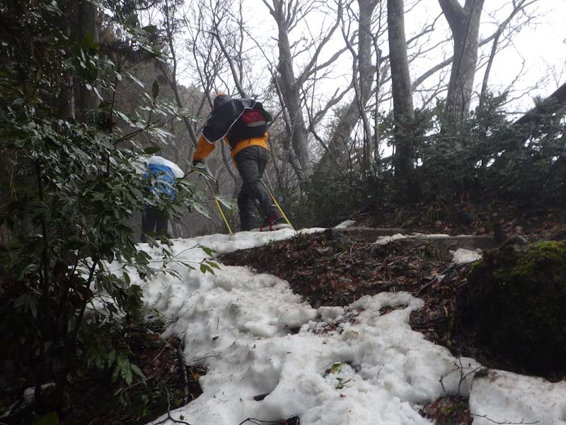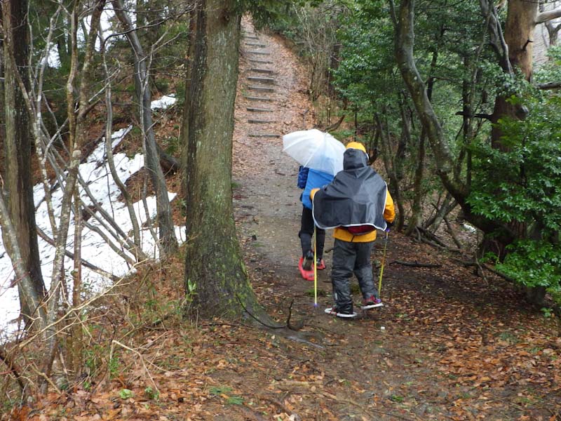 | 雨は一向に止まない。 | 急登箇所に挑む。 |