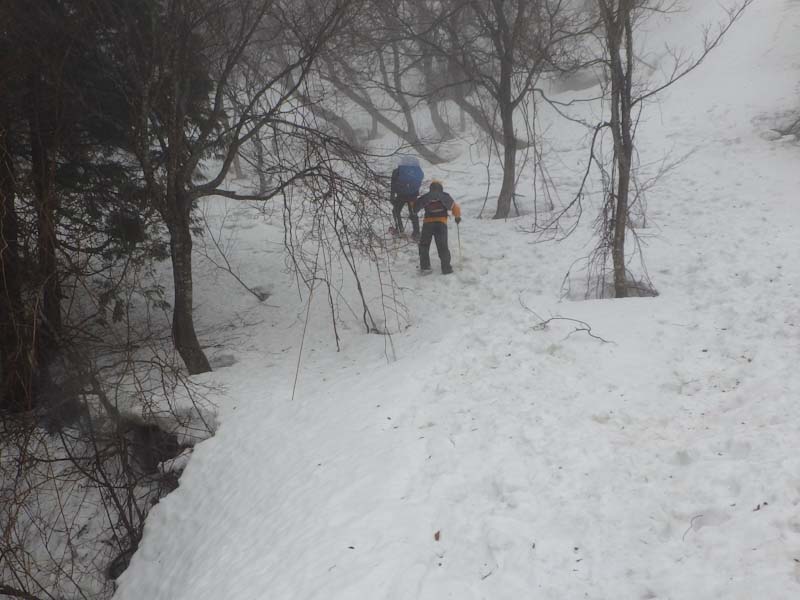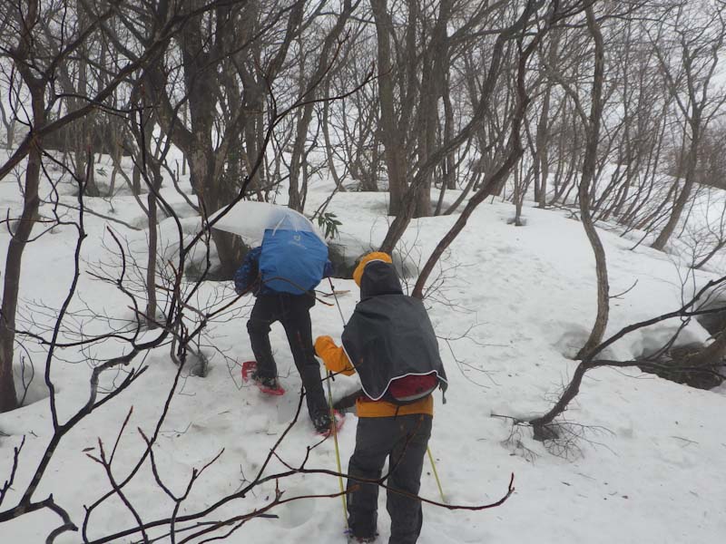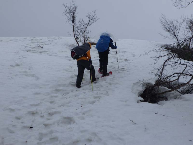| 雪の繋がりを求めての歩き。 | これから上は雪がびっしり。 |