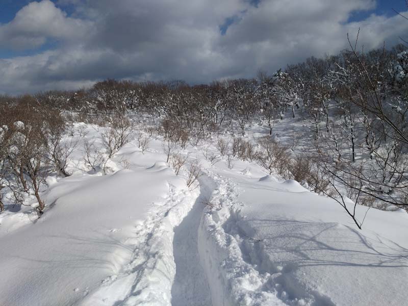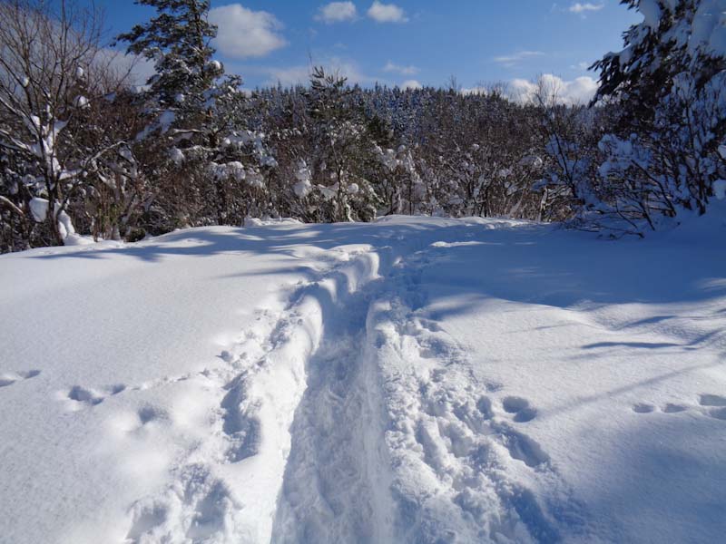 1/3 帰阪する長男の見送りもあり、スタートが遅れてしまった。その事で、「山ノ神」とのボタンの掛け違い(私はそうは思っていない。)があり、今日も単独行。しっかりしたトレースを、唯一人で歩くのは、そんなに寂しくは思わない。いろんな事を思い出したり考えたりする機会だと思っている。