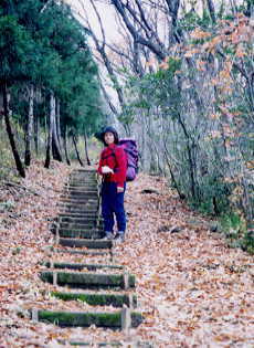 コンクリート道路を下り御前山への遊歩道に入って行くが、折からのリレーオリエンテーリングの選手達が、平行する林道を駆けていた。林道から離れるに従い、静けさを取り戻した道を大量の落ち葉を踏みしめて今日も贅沢な歩きとなる。