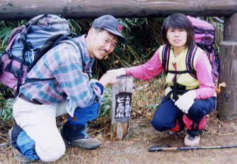 頂上の標柱と |
