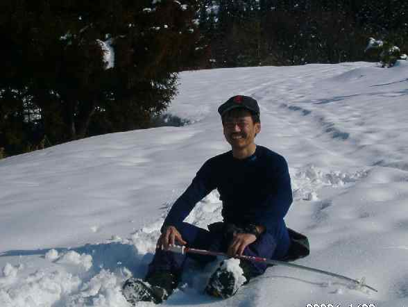 誰もいない静かな山に、自然を満喫する。 何時のものかは定かでないが、 かすかに、トレースが残っている。 |