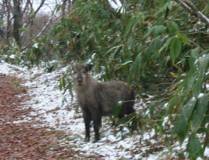 カモシカ君逃げ出した(ミゾレ混じりの中) |