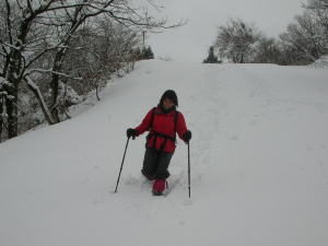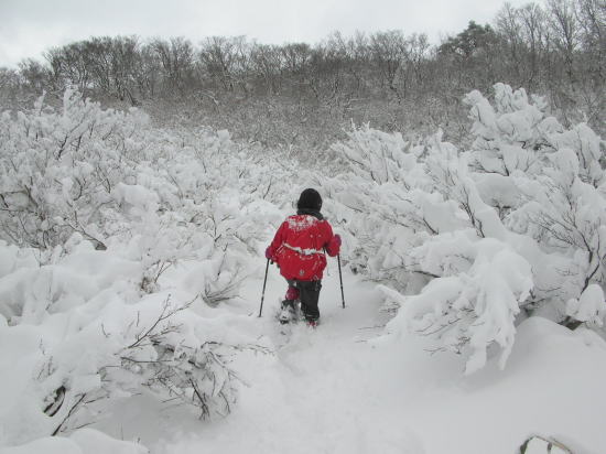 | 林道を行く | 食事を終え、スノーシューを装着 | 小佐波御前小屋を出発! | 猿倉山から降りる |