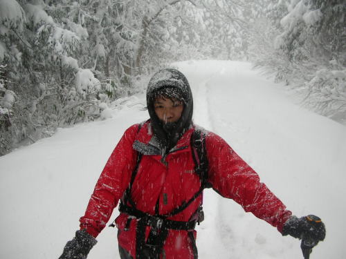 | 雪舞う中、今日も歩いた |