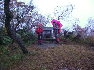 11/12 「雨でも行く。」 「何処でも行く。」 好山病重症者・eiko女史との集合場所へは、雨が降り、しかも、時々、ピカピカゴロゴロ。午後のスケジュールが、立て込んでいた事もあったが、弱き気の「山ノ神」の「もっと簡単な所へ・・」 に心が動かされ、北ちゃんと田村さんが時間制約がありながらも、小佐波御前山に行くと知っていたし、三人の合意で、急遽、そちらの方に行き先を変えた。北ちゃんとは、特別約束をしていなかったが、車中、「山ノ神」に、その主旨のメールを、打ってもらった。