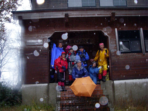 そのルートに1時間ばかり費やし、小佐波御前山避難小屋に着いたのは、午前11時であった。北ちゃん・田村さんの到着を予想して、二つの豆腐料理を準備して構えていたのであるが、その思いは通じず、我々の胃袋の中に消えて行った。しばらくして、「おっ~、来たかと思ったら・・」 師匠を従えたまきちゃんであった。 (ビックリ・・) 結果的には、所用が重なり出遅れた北ちゃんらは、大分盛り上がってからの到着となった。でも、久しぶりの再会は、熱気が漂い寒さを吹っ飛ばすものとなった。当然、12/3の話にも及んだのである。