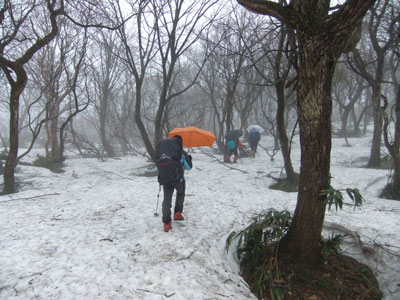 開光記念碑から祠のある山頂に掛けての雪の状態。
