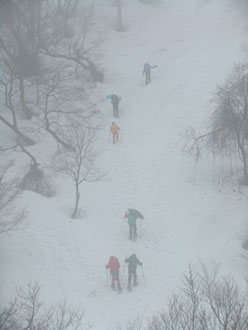 2/28 ずぶ濡れになった小佐波御前山であったが、参加したメンバーは切れなかった。「何故こんなにしてまで・・」 と思わないではないが、やはり何かを求める共通のものがあるのかもしれない。山頂小屋での食事は、いつもに増して温かく、そして美味しかった。久し振りの顔もあったし、初々しいゲストもあり、余計に盛り上がったような気がした。