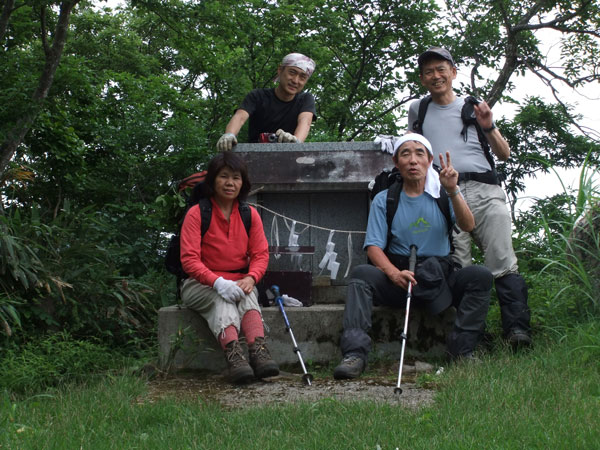 | 祠のある山頂で・・・ (そう言えば全員で撮った写真がないという事で・・) |