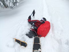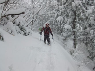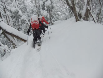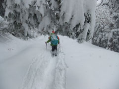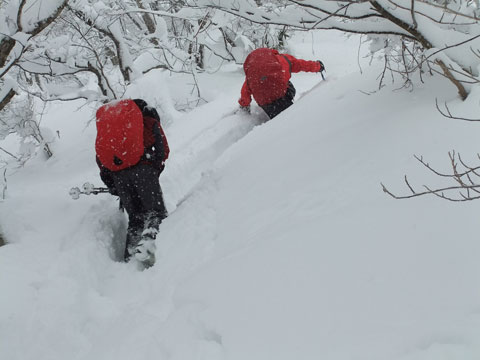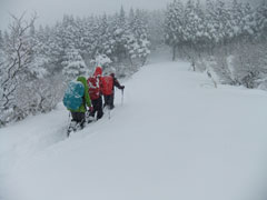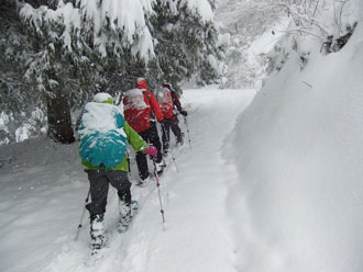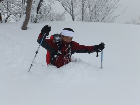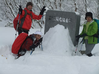 | 駐車場に辿り着くだけでも大変だった。目の前の ちびっこ広間から取り付いたが凄い降雪・雪量。 |