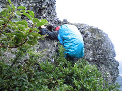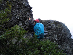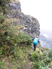 そのくせ、獅子ヶ鼻に足を向ける。帰りも上部の同所に行ってしまった。「おい・おい」 という間に岩に取り付いた。でも、岩を崩して立ち往生してしまった。私以上に岩が嫌いのはずなのに、「ビール禁止令」 が、それくらい頭に来たに違いない。