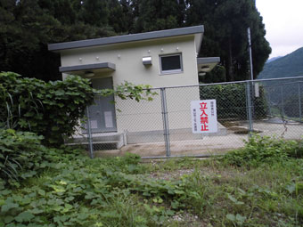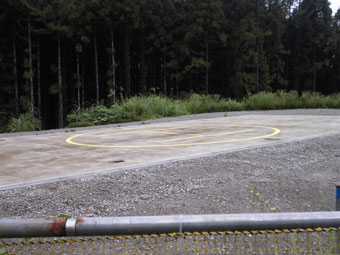 | 林道に出て、300m程上に行くと、鉄塔建設工事用 なのでしょうか、待機所(へりーポート)がありました。 |