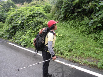 100m程下がるとミラーがあるカーブの所に、 点検道がありました。(おそらく、夏道を兼ねている。) |