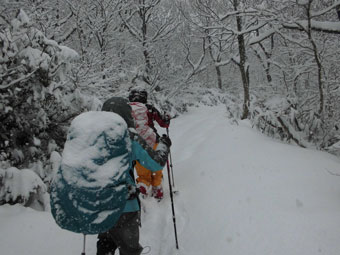 3ヶ月も運動していないという客人を心配していたのであるが、「あれは、三味線だったのか?」 と思う歩きに、「山ノ神」と顔を見合わせてしまった。でも、何もかもを白い雪に覆い被せるというのか、吹雪でモヤモヤを吹き飛ばされる程を望む客人にとっては、一日中降っていた雪は、それに及ばないにしても、結構満足感に浸っていたように思えた。