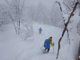 小雪が舞う中を下山開始です。