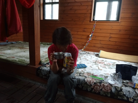 12年目の雨具は、傘を差しても、雨が染み込んで来ます。あえて古い靴を履いたのですが、靴下がグチャグチャになりました。避難小屋では、カップ麺とコーヒーを頂いただけですが、それなりに充実した一日になった気がしています。孫達を見送って、戸締まりしてから出掛けました。午後5時の育成クラブ(学童保育)の迎えに間に合うように帰宅しました。山だけでなく、一家の一員としても貢献しています。(笑)