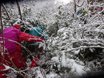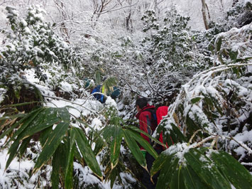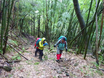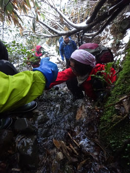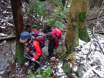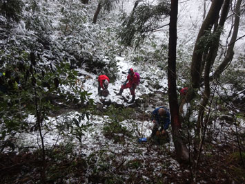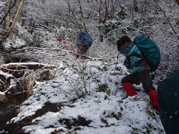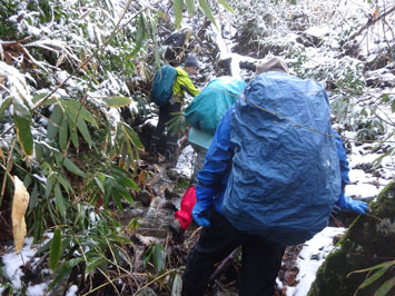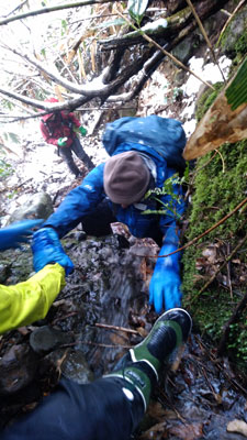 小沢で、ちょっと休憩!| そして、笹薮の中へ・・・ |