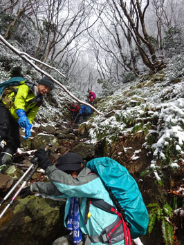 好山病登り納めに集ったのが7名。| 松田師匠のガイドで芦生から・・・ |
