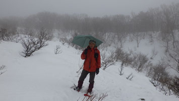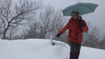 | 私は、ずっと、傘を差していました。 | 祠のある山頂ですが、埋もれていました。 |