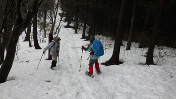 | 山頂付近は靄っていました。 | ショートカットして林道へ・・・ |