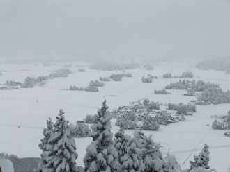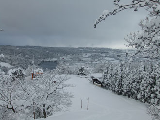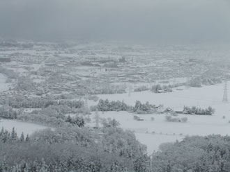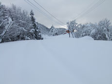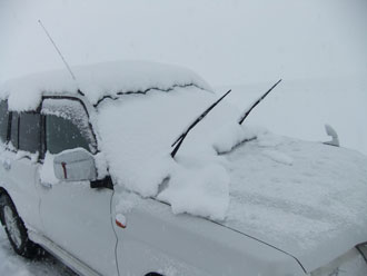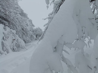 | 林道を通らず、直接駐車場に戻った。 | 僅かな時間で、これだけ雪が積もった。 |