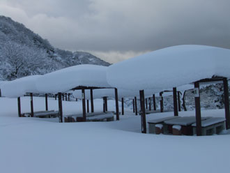 | 雪の造形? | バーベキュー施設の棟 |