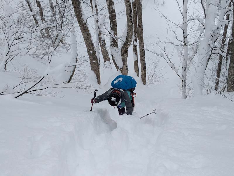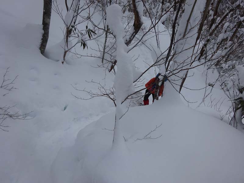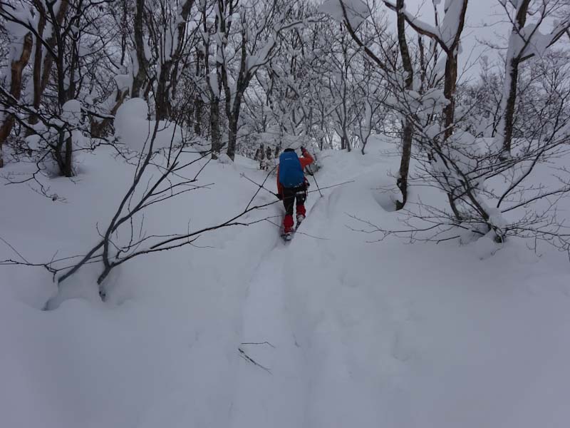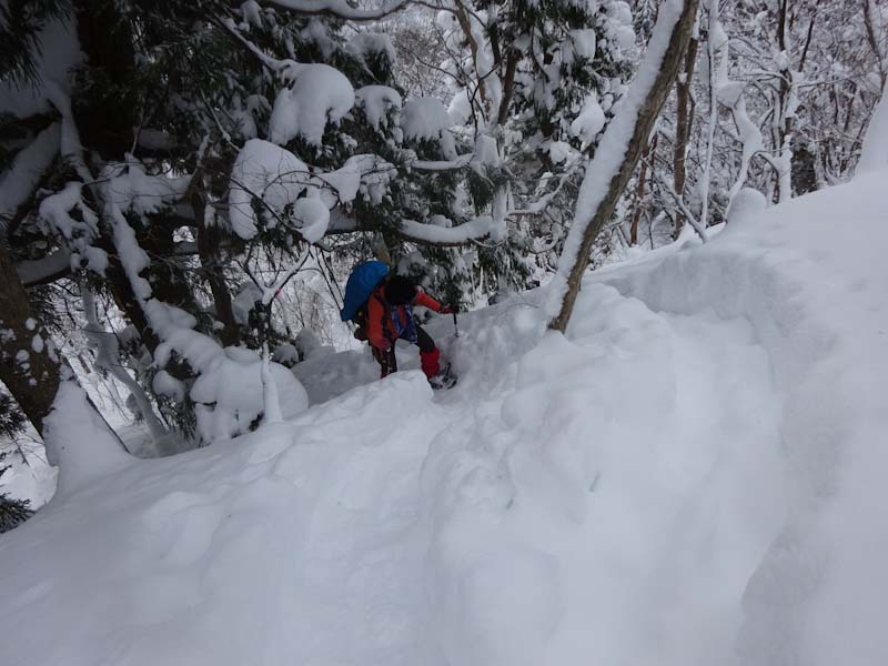 下山を城前峠方面にとったが、ちょっとルートを外した事もあり、「山ノ神」に叱られて戻る事になった。しかし、登り返しは結構辛かったはず。来拝山の標高は899m。100m200m違うと雪質も雪量も違う。今年は、まだ大辻山に行ってない。