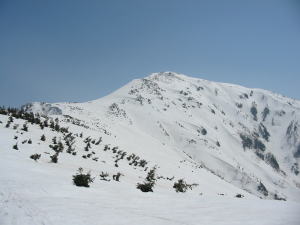 コット谷は、亀裂もなくスキー場のゲレンデのようであった。高度を上げるに連れ、ブナクラ谷と対峙し、その右手に赤谷山が、そして、左手の東芦見尾根の上に毛勝の山々が少しづつ浮かび上がって来る。中山が小さくなってしまう頃、主役の剱岳が登場して来るのである。コット谷は、何度来ても気持ちが良くステキな所であるが、いったんガスに覆われると、「何でこんな所で!」と思うくらいに辛い目に遭わなくてはならなくなるからご用心を!