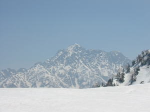 先鋭な剱岳を酔いしれるほど眺め、大日岳から滑り降りる見事なスキーヤーに喝采をおくった山頂に別れを告げたのは、座り始めから3時間近くの時が経っていた。