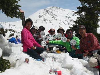 | 早乙女岳山頂で、「ハレルヤ」恒例の宴会を楽しむ! |