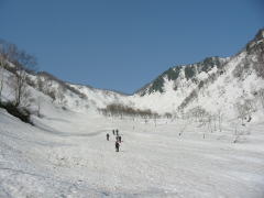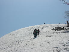 「シュンちゃん」を先頭に我々が動き出すと、スキーを担いだ多くの方々が後続となった。