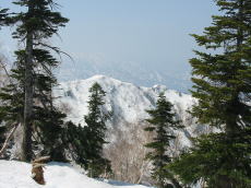 好き勝手を言いながら、広い雪原にシラビソが程好い位に点在する早乙女岳山頂に着いた。風当たりが少なく、展望の良い所に宴会場を設定し、このために担いで来た「シュンちゃん」のスコップでテーブルが作られた。