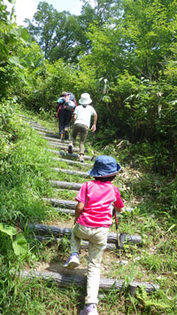 それでも、私は、上市の千石城山に車を走らせた。確かに暑かった。子供達は歩く気はない。しかし、稜線のベンチまでとそそのかした。足取りは重いし、ミーが全く歩こうとしないのであるから参った。でも、ベンチまで辿り着いたのである。これまでかと思ったのであるが、またまた私だけが山頂に挑んだ。