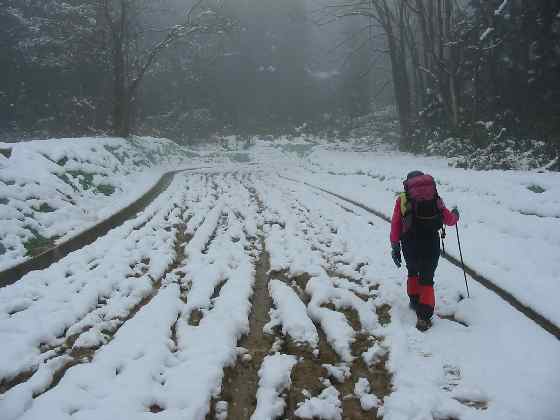 登山口までの林道は、泥濘状態で我慢の10分間である。