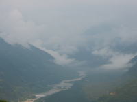 剱岳はガスの中。そして早月川。 |