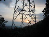 下山中、鉄塔の合間からの夕日。 |