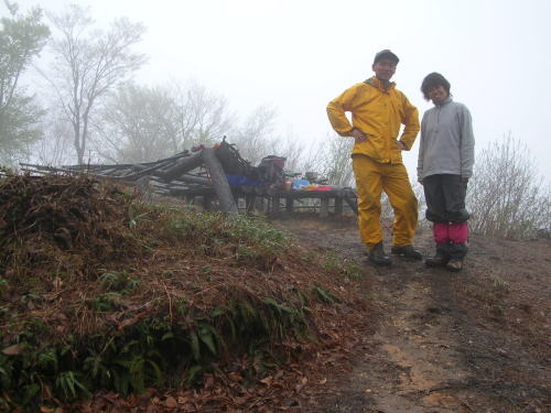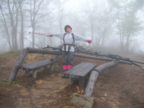 昨夜来の雨が、ず~っと降り続いており、山行日和ではなかった。立山川偵察、のち山菜採り、そして、展望の全くない千石城山に登った。疑似木の藤棚が無残にも倒壊していた。山頂の隅っこに、ほん僅かの残雪があったが、これも後2~3日で溶けてしまうくらいの量であった。