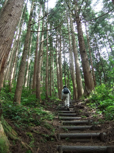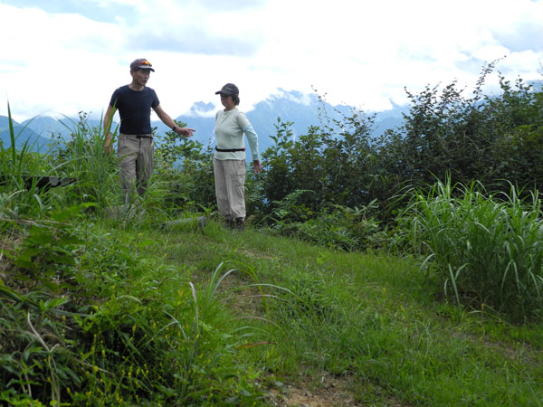 欲張りな「山ノ神」は、城ヶ平山にも行こうと言う。「ちょっとだけだよ。」 と言って、大岩に向かった。雨どころか、青空が広がって、暑い日になった。登山道から見えるミョウガを、ちょっぴり頂く収穫の山行となったが、「休日は汗を掻くに尽きる。」 と改めて感じた。少し草木が伸びている山頂であったが、気分は最高。500mにも満たない山であるが、大展望が広がるからである。