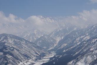 どんなに遅くとも、足さえ前に出しておれば、そんなに差はないもので、何分も経たない内に、「山ノ神」はやって来た。楽しみにやって来たのに、剱岳にだけ、ガスが掛かっていた。それでも、てっぺんが見えたから、まだ良しとしなければなるまい。