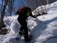 「昨日の大倉山では、あんなに褒めてやったのに・・」 と思ったが、諸々の荷を私のザックに移した。でも、まるで二日酔いのように喘ぎ喘ぎ状態であった。(名誉の為に→ 昨夜は、疲れて缶ビール1本も、やっとであったのは確か。)
