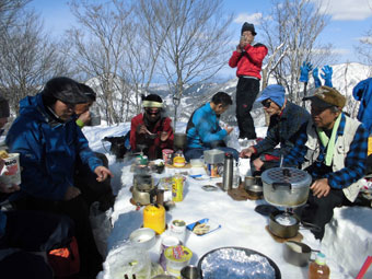 予定よりも早くそのピークに到達するものだから、2時間程の食事時間となった。今回は、飲むというよりは、美味しい物がたくさん特設テーブルに並び、大いに盛り上がった。その余勢を買ったわけではないが、遠くに見えた千石城山の頂に、1時間程で到達するのであるから、改めて人の力(足)とは凄いものだと感心してしまう。