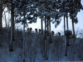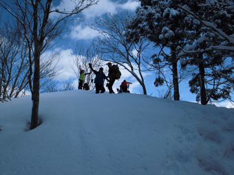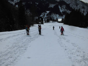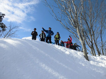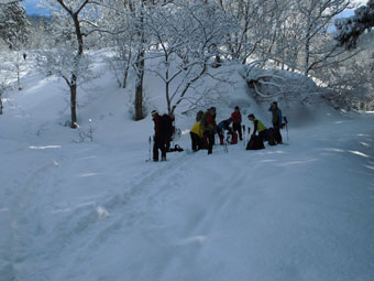 | スキー場上(林道)で全員集合の調整。 |