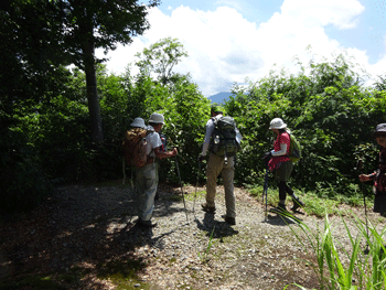 7/9 「低山なら一緒したい。」 と言ってくださった池田氏。でも、待ち合わせ場所に洋子夫人がおいでたのは、本当にサプライズだった。そして、登山口で、準備していると河原氏と彼女?がおいでたのには、またまたびっくりだった。皆、心配してくださったのと、どんな格好して歩くのかを見たかった?の冷やかしもあったのかもしれないが、本当に何と言っていいのか分からないが、私は幸せ者である。