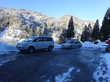 | 駐車場はツルツルでした。 | まずまずの雪量? |