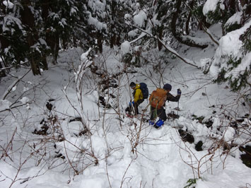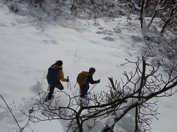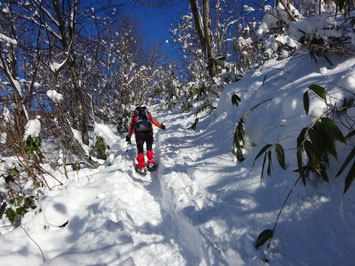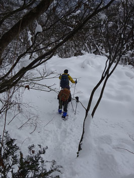 | 夏道の小沢を渡って・・・ | びっしりトレースがありました。 |
