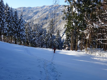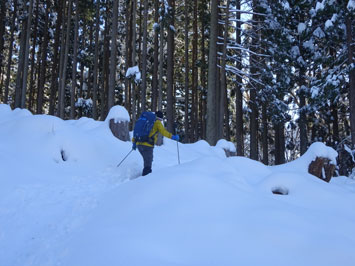 | 杉林を行く・・・・ | 通常(夏)の登山口にやって来て・・ |