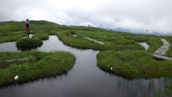 風衝草原の木道は気持ちよく歩けます。