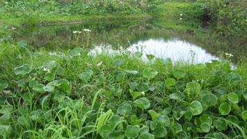 池塘の周りには、イワイチョウが咲いていました。