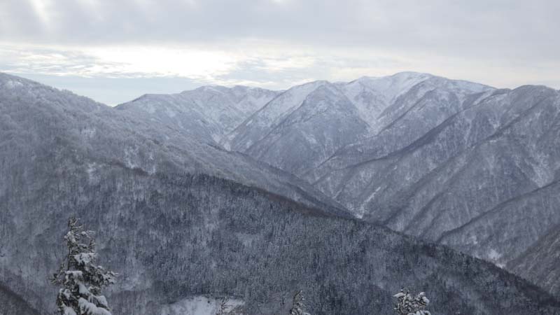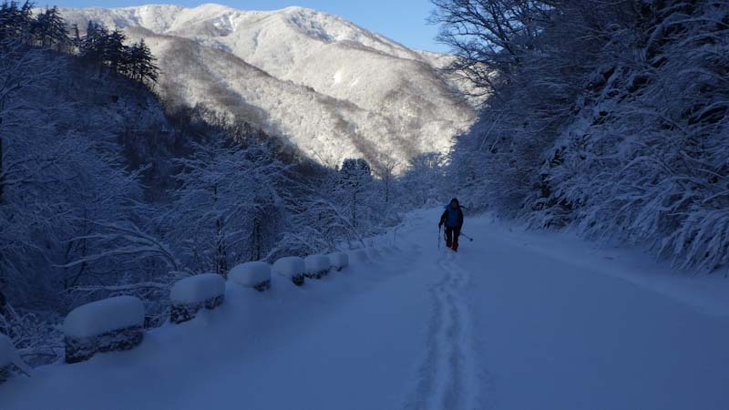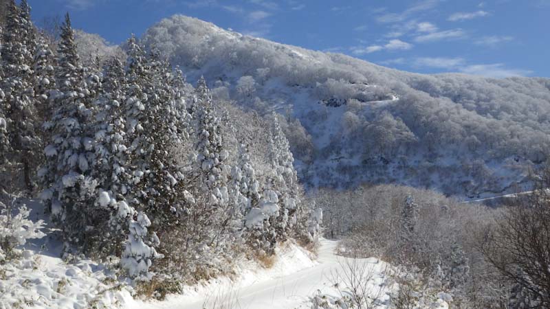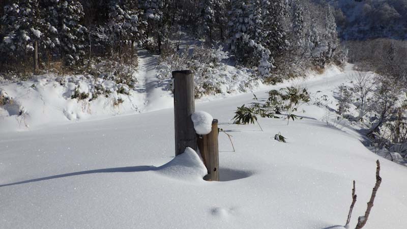 1/6 前日の金剛堂山のリベンジも考えたが白木峰とした。「えぇ~」と言う「山ノ神」だったので、少しばかりスタートが遅れた。それでも、山頂へ行く計算をしていた。管理棟奥まで車が入ったからである。しかし、少雪でショートカット出来ず長い林道歩きを強いられた。